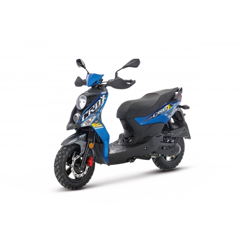 Um junge Scooter-Fahrer anzusprechen, unterstreicht der Crox seinen abenteuerlichen Look: Handschützer, "nackter" Lenker, 12-Zoll-Reifen mit Rillen und Linsenoptik. Ausgestattet mit einem 4-Tonnen-Motor mit Einspritzung ist es sparsam und bringt Sie überall hin, zu geringeren Kosten. Bereit für den Großstadtdschungel? ​ VORDERREIFEN 120/70 - 12’’ HINTERREIFEN 130/70 - 12’’ VORDERRADBREMSscheibe Ø 190 mm HINTERRADBREMSE Trommel Ø 110 mm VORDERRADAUFHÄNGUNG Hydraulische Gabel HINTERRADAUFHÄNGUNG Einzelner Stoßdämpfer MASSE KRAFTSTOFFTANK (LITER) 6.5 L/B/H (MM) 1905 x 750 x 1095 SATTELHÖHE 813 LEERGEWICHT (KG) 102 MOTORISIERUNG MOTOR Einzylinder – 4 T – Einspritzung HUBRAUM 49,5 ccm LEISTUNG 2,2 kW bei 8000 U/min KÜHLUNG Luft ÜBERTRAGUNG Variator KRAFTSTOFF SP98 E5 START Elektrisch